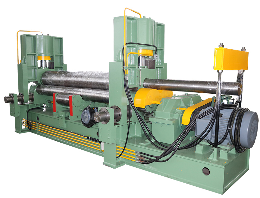 W11SNC萬能式三輥卷板機是一種雙夾板彎板機。 上輥為液壓驅動。 上輥可水平和垂直調節,兩個下輥是固定的。 所有合金鋼輥均經過感應淬火和熱處理。 經過感應淬火處理后,所有的輥都將被研磨和拋光。