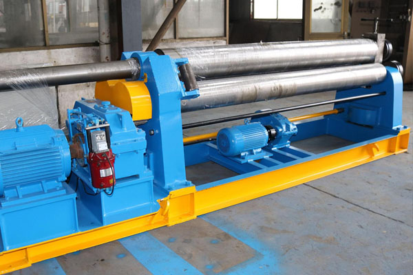 W11對稱卷板機是全機械對稱式三輥卷板機。 三個滾筒全部固定,像金字塔一樣放置。